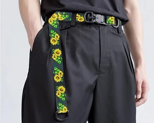 Mode et Accessoires: Les sangles à motifs sont largement utilisées dans l’industrie de la mode pour des produits commeceintures,sacs,portefeuilles, etchaussures. La capacité de la sangle à intégrer des logos et des designs uniques donne aux produits de mode un aspect et une sensation distinctifs.Motifs tissés Jacquardsont souvent utilisés pour les produits premium, garantissant à la foisidentité de marqueet une durabilité à long terme. Les accessoires de mode fabriqués avec des sangles à motifs permettent aux designers d’expérimenter différentes textures et impressions, attirant un large éventail de consommateurs.